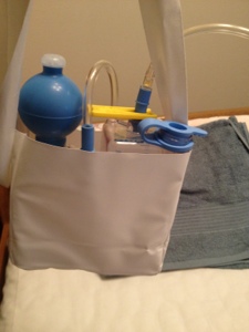 リンパ節を沢山切除したので、身体から管を通して、この容器に流れにくくなったリンパ液を排出してるんだけど、これが30ml以下にならないと管が抜けなくて、退院出来ないらしい。