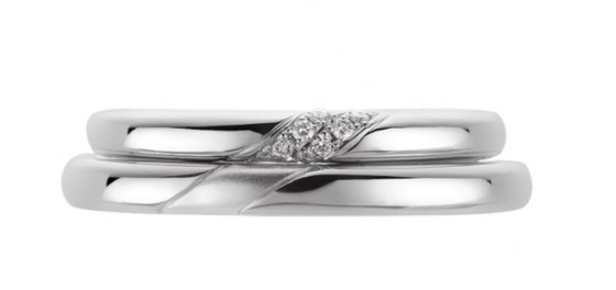 斜めに配されたデザインは二人の道。